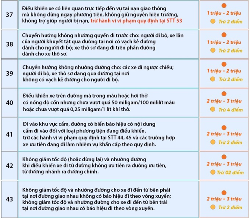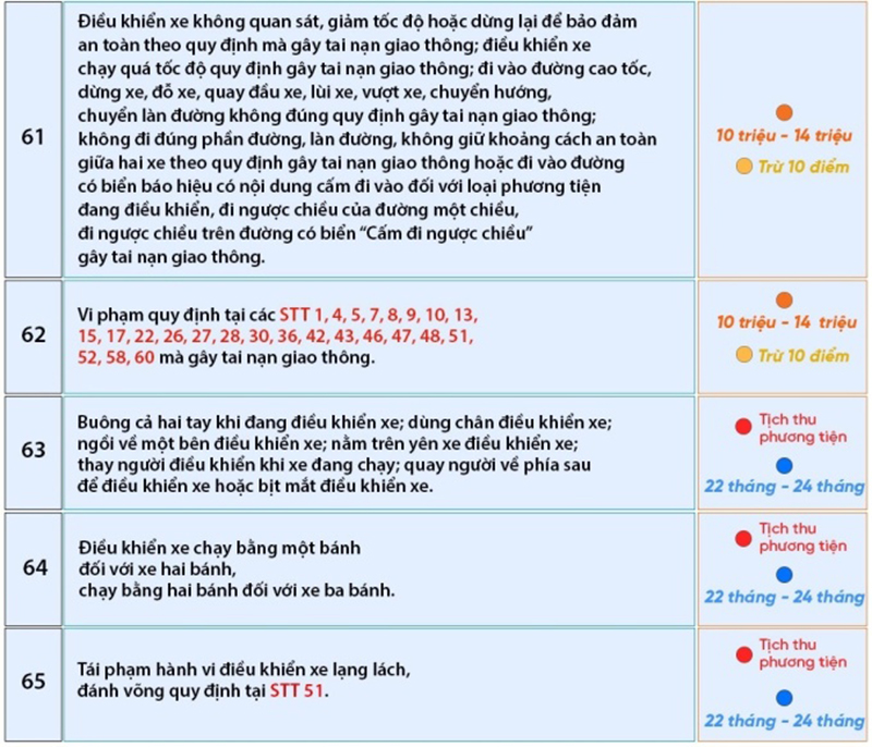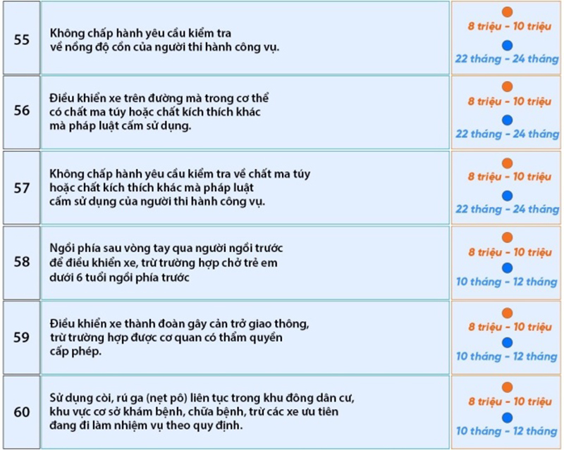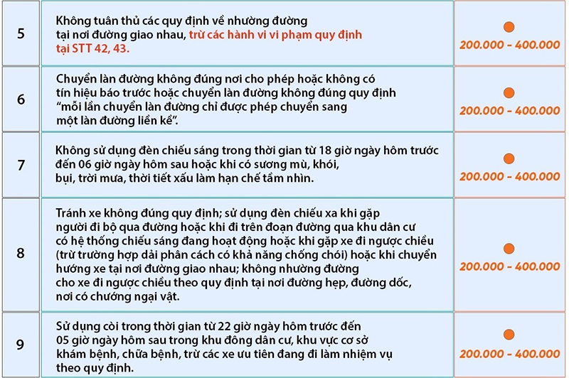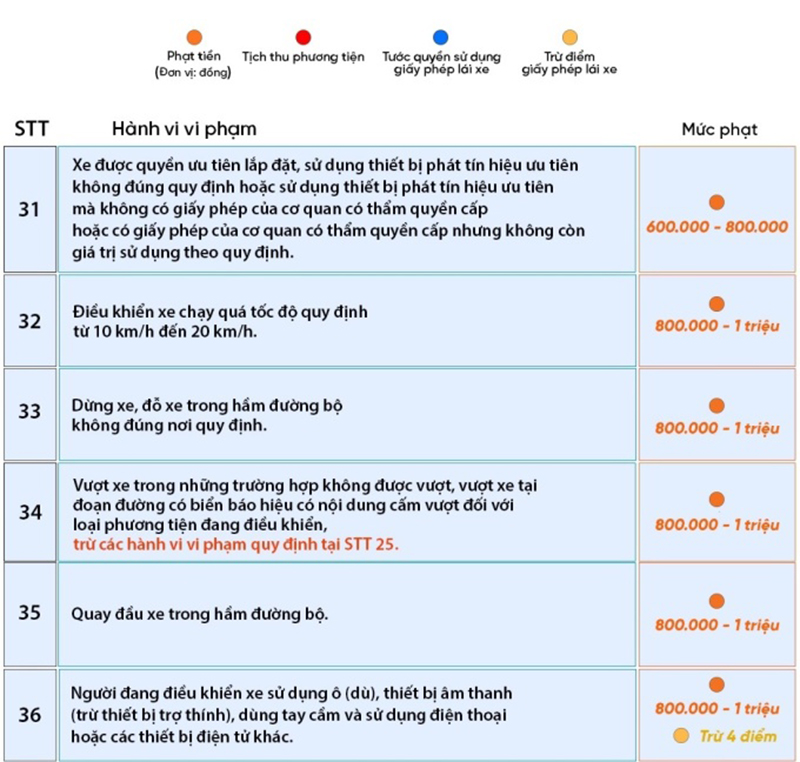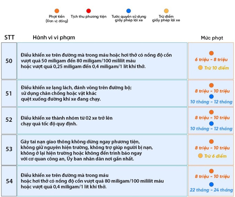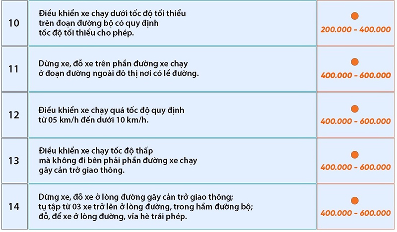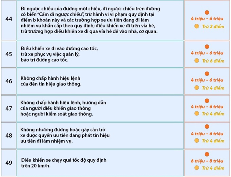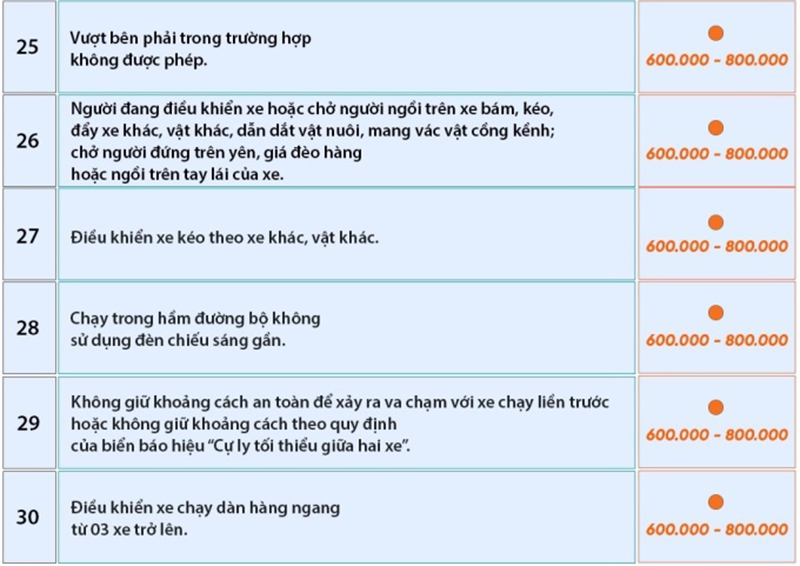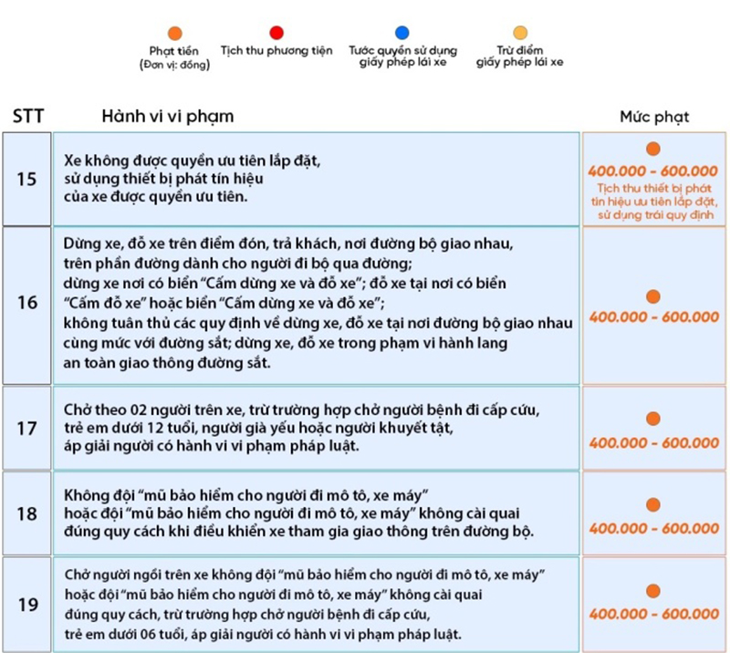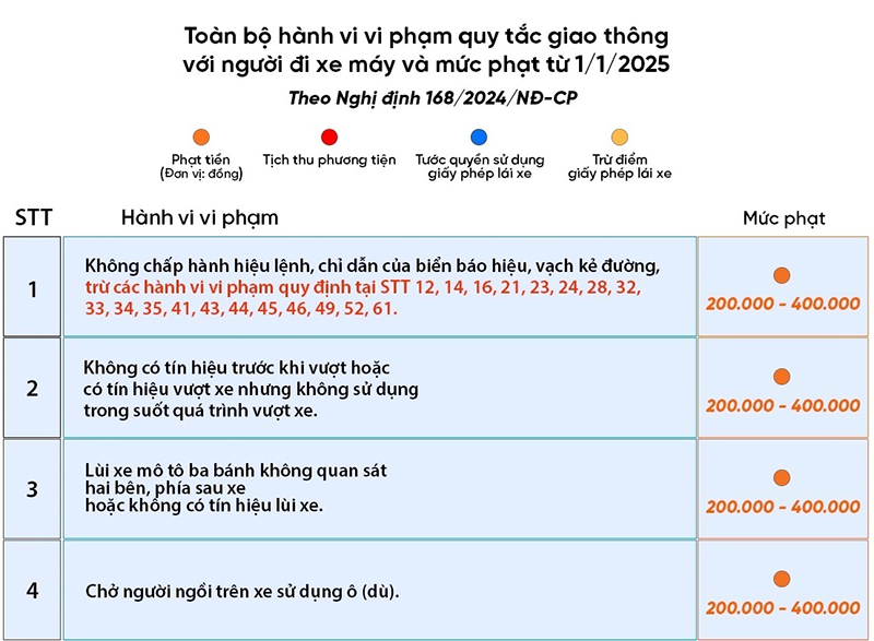Toàn bộ mức phạt vi phạm vi phạm giao thông với người đi xe máy